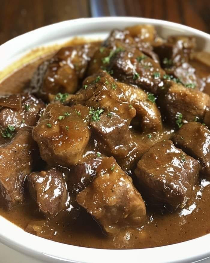 Here’s a hearty and flavorful recipe for Slow Cooker Beef in Onion Gravy. This dish is perfect for a comforting dinner, served over mashed potatoes or rice.